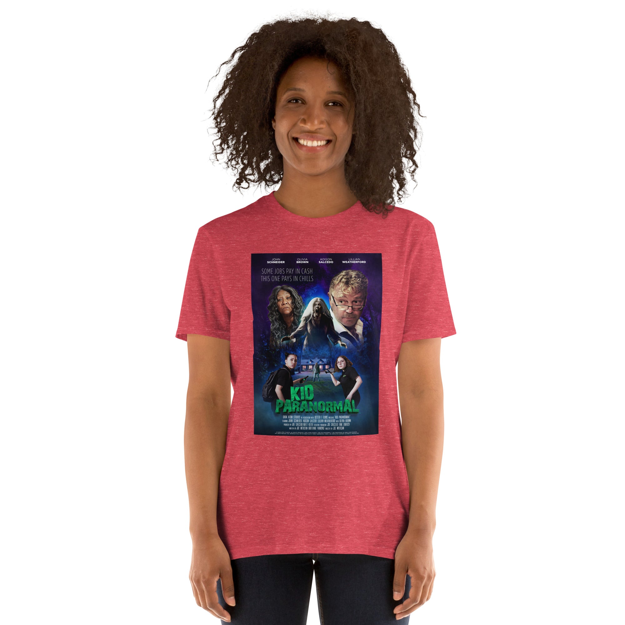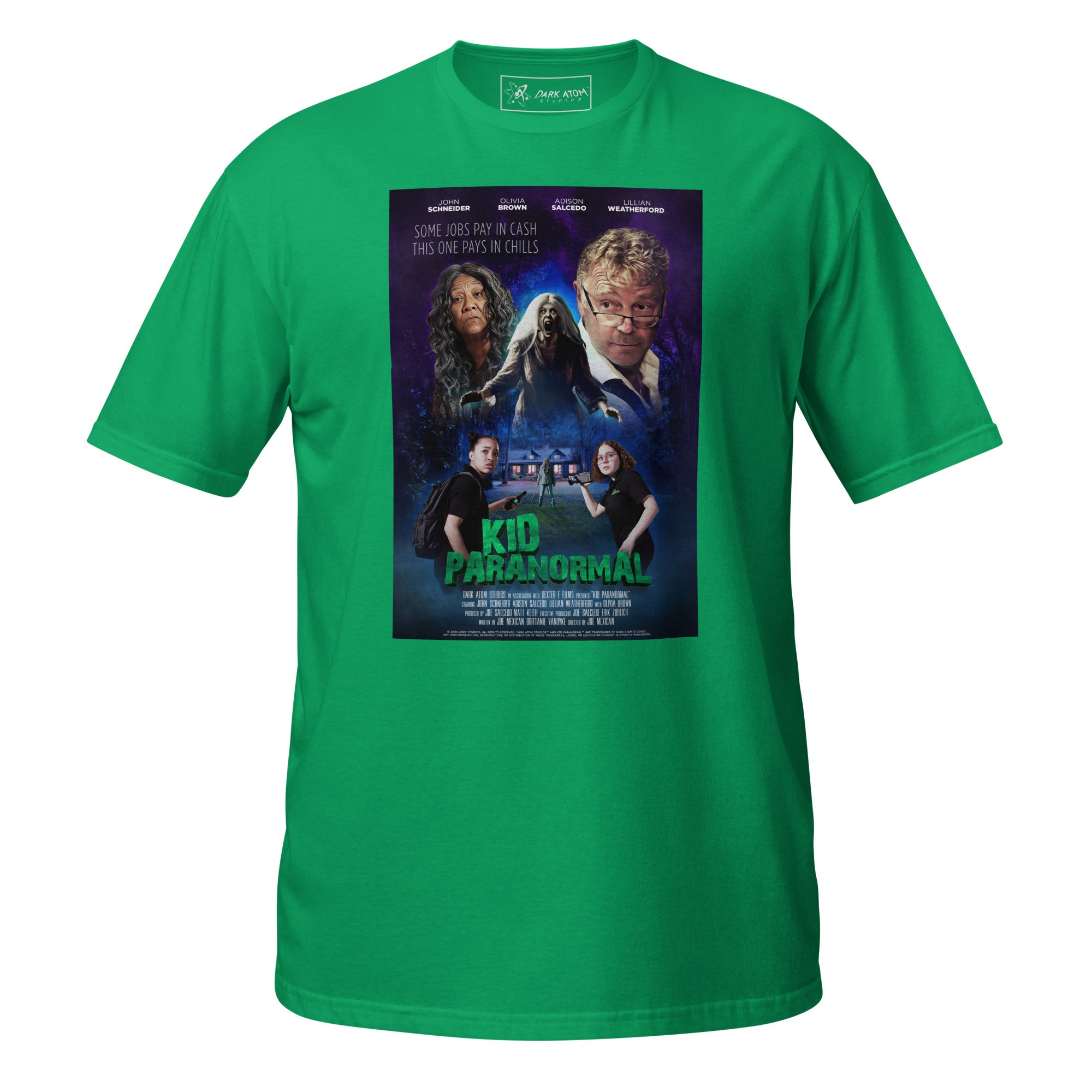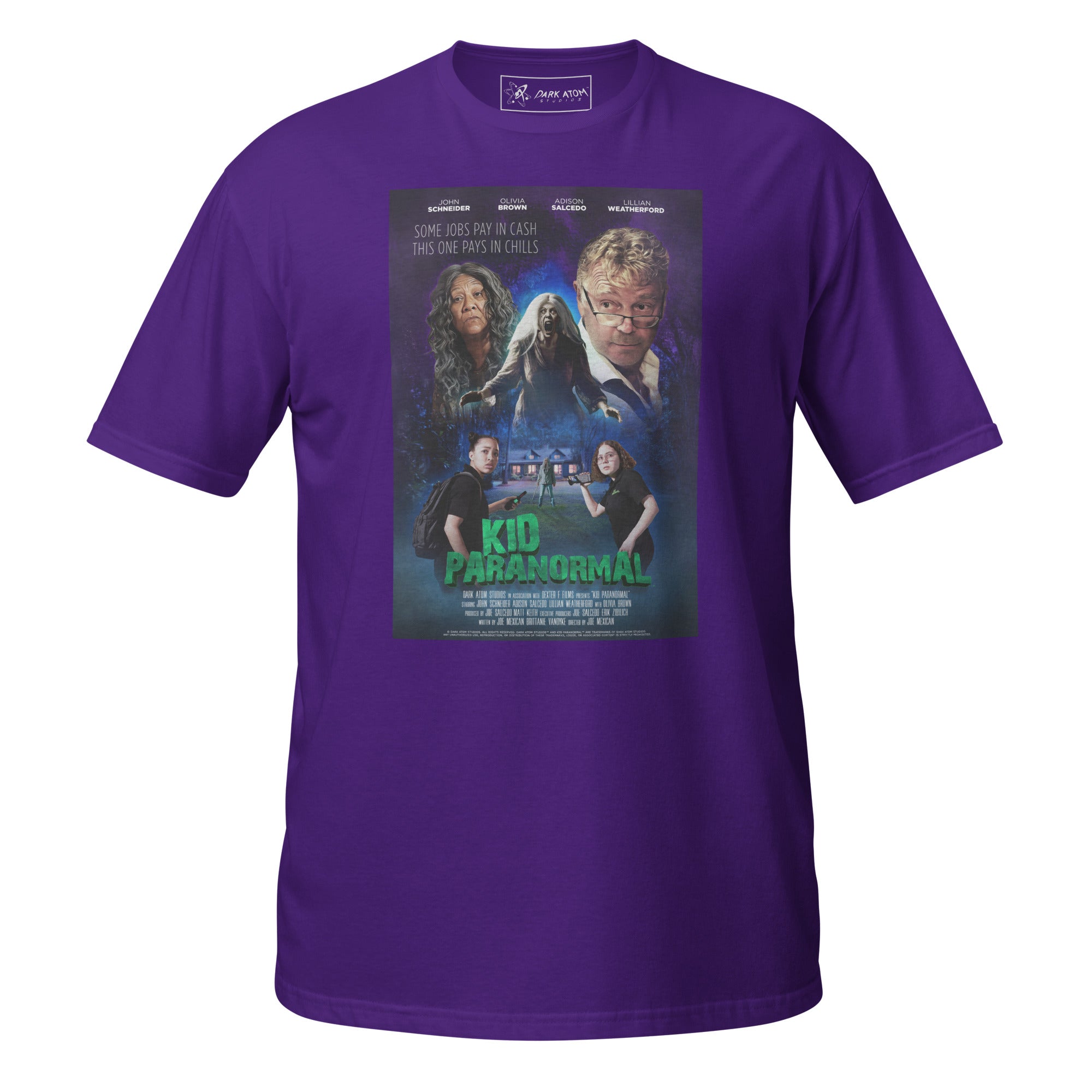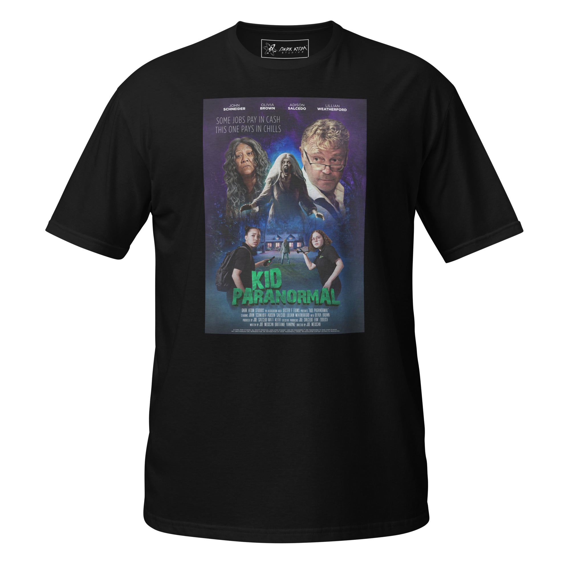 Get ready to represent your favorite paranormal duo with the Kid Paranormal™ Official Poster T-Shirt! Featuring vibrant artwork from the official movie poster, this shirt showcases the iconic cast: John Schneider, Olivia Brown, Adie Salcedo, and Lillian Weatherford. The design brings the thrilling world of Kid Paranormal™ to life in bold, fun colors, making it a perfect addition to any fan’s wardrobe.